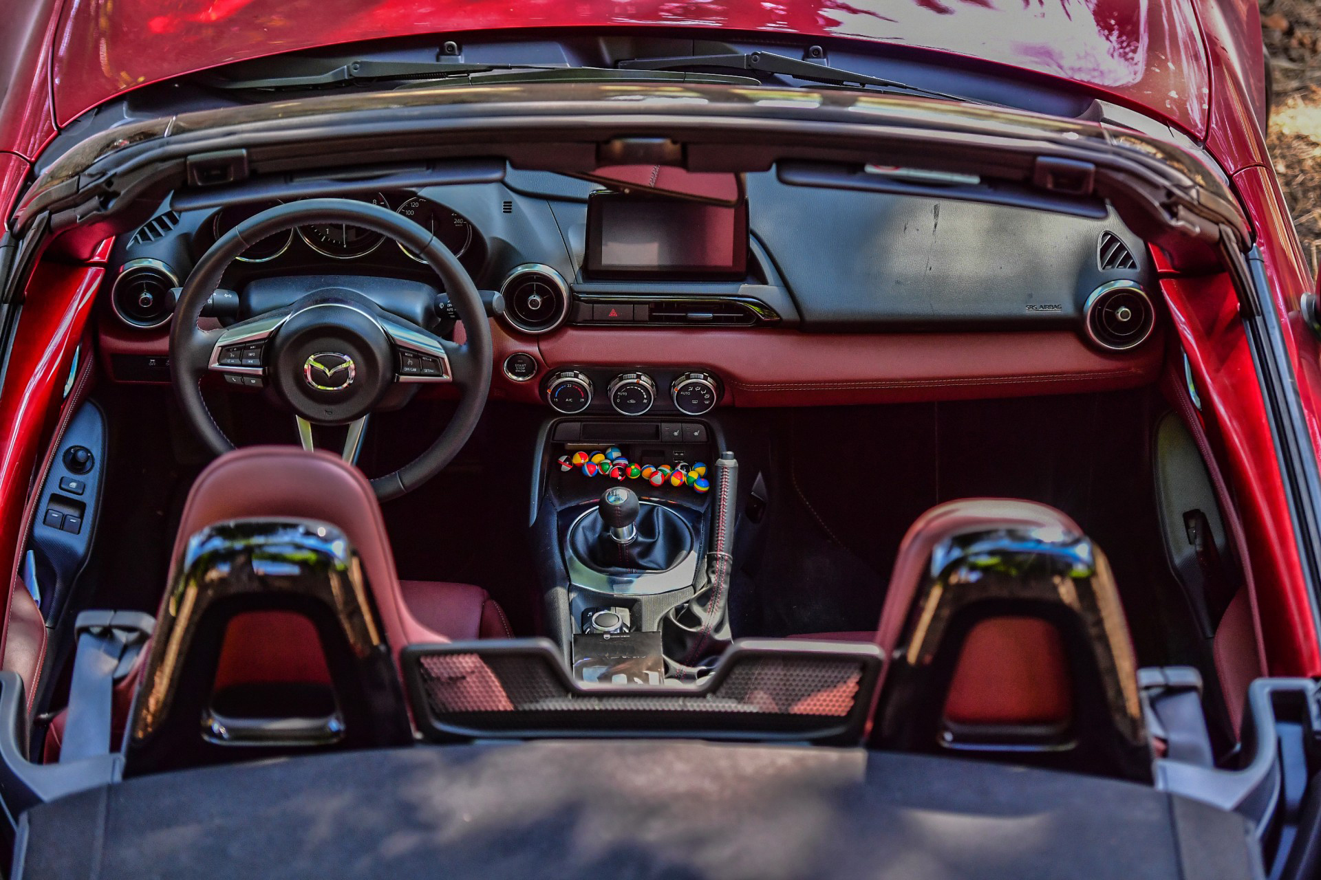 Il grande fascino della cabrio, anche se il caldo eccezionale di metà luglio ha spesso fatto preferire la configurazione “ermeticamente chiusa con aria condizionata alla massima potenza”. Niente da dire, oggi più che quando stava per diventare mia, le linee, lo stile e la personalità della MX-5 sono notevoli. È proprio bella e guardarla dà piacere. Fatto salvo quanto leggerete poche righe più sotto, il comportamento dinamico nella guida brillante (precisione, bilanciamento, tenuta e frenata) è buono: la MX-5 diverte e poi il sound che la accompagna gratifica le orecchie. Infine, sono stato sorpreso in positivo dal comfort a bordo (certo, la rumorosità di una cabrio con la capote di tela si mette in conto), con grande merito ai sedili e alle sospensioni, sportivi sì ma non impegnativi anche sulle lunghe distanze.