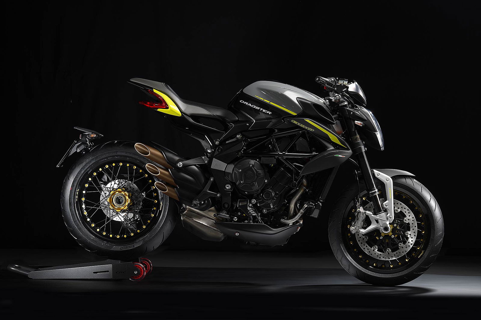 Il motore della Dragster 800 RR è fissato al telaio misto in tubi d’acciaio e piastre di alluminio da un nuovo punto di ancoraggio che ha permesso, secondo i tecnici MV Agusta, di incrementare la rigidità flessionale a vantaggio della guida. La potenza dichiarata è di 140 cavalli a 12.300 giri e la coppia è di 87 Nm e il tutto con l’ago della bilancia che si ferma a 168 kg a secco. la Dragster è una moto leggerissima. Non cambia lo schema della ciclistica che prevede una forcella Marzocchi con steli in alluminio da 43 mm, una rarità per questa categoria, e trattamento DLC per la scorrevolezza e il monoammortizzatore della Sachs regolabile. Anche Bosch con il suo ABS riveste un ruolo da protagonista nella gestione dell’impianto frenante equipaggiato con dischi da 320 mm di diametro e pinze Brembo radiali perché prevede l’opzione RLM – Real wheel Lift-up Mitigation – che in caso di frenata di emergenza scongiura il rischio di ribaltarsi in avanti. Prezzo di 18.900 franco concessionario.