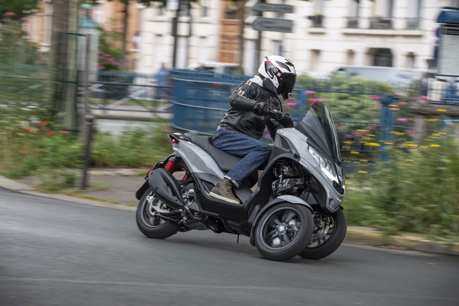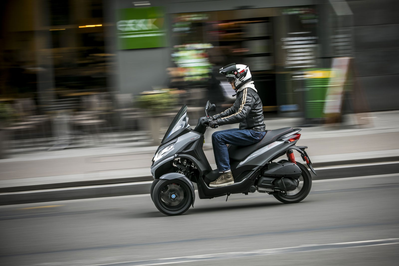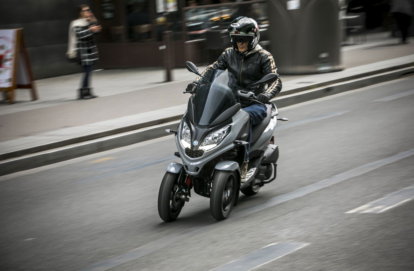 Come si guida uno scooter a tre ruote? La prima impressione, soprattutto per chi ha dimestichezza con le due ruote, è un avantreno che si fa sentire, nel senso che l’agilità e la sveltezza non sono allo stesso livello di uno scooter tradizionale e, anche in fase di impostazione di curva, richiede più decisione. Ci vuole però davvero poco per abituarsi: dopo dieci minuti ci si scorda che le ruote davanti sono due e dopo venti ci si trova a girare due volte sulla stessa rotonda per provare (e riuscire) a piegare ogni volta un po’ di più. Ultimo passo, prima di potersi fregiare del titolo di “Autentico Threewheeler”, è imparare a utilizzare il roll-lock (il bloccaggio del basculamento dell’avantreno) e fermarsi ai semafori senza mettere i piedi a terra e con l’MP3 perfettamente diritto.La timidezza iniziale lascia il posto a un profondo feeling con l’avantreno e con il susseguirsi delle situazioni potenzialmente scabrose diminuisce la paura che ci possa tradire.
