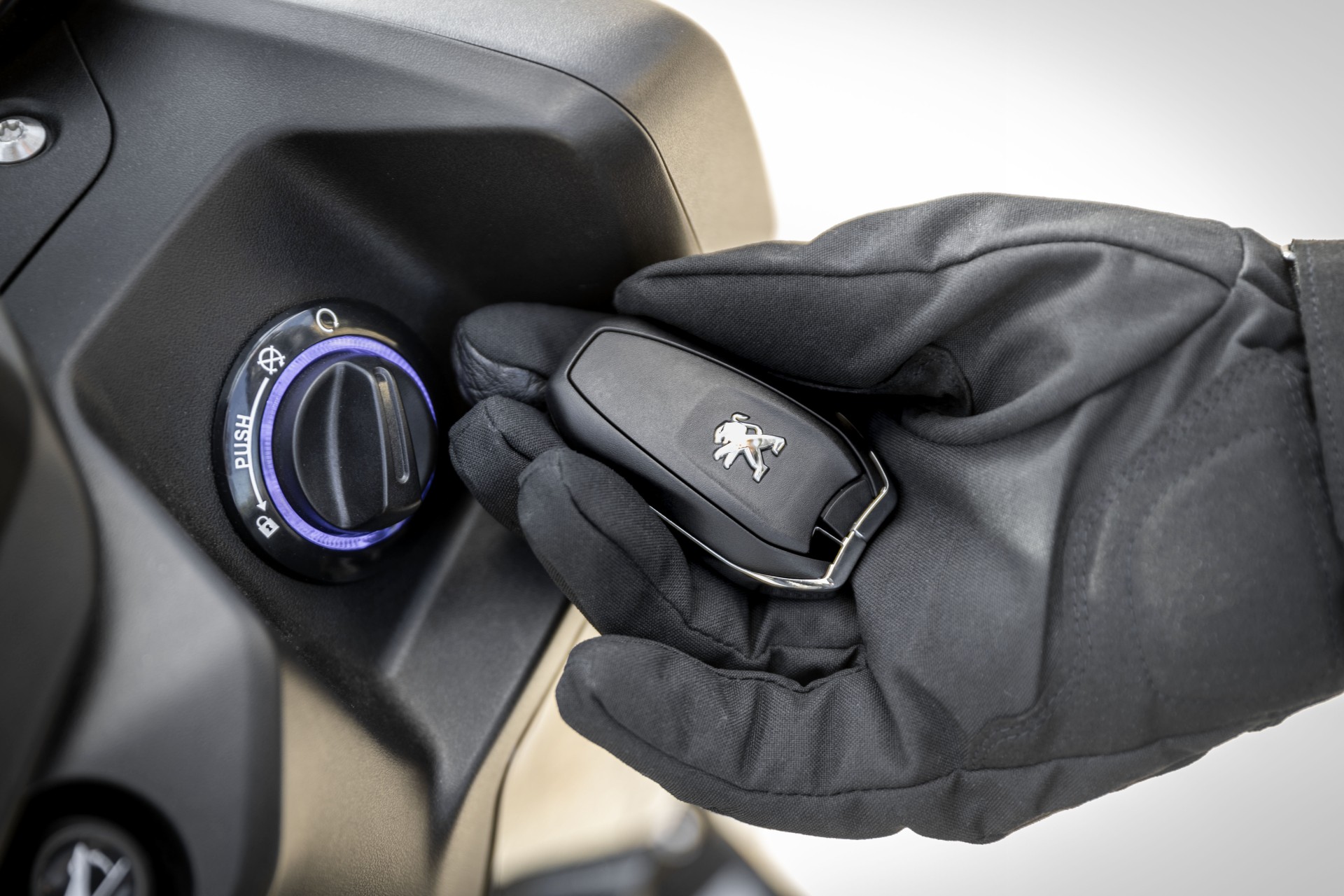 La contaminazione fra due e quattro ruote è palese e ottenuta con la condivisione di alcuni stilemi identificativi del marchio: la griglia a scacchiera della presa d’aria sul muso, i fari a LED con le luci posteriori che richiamano gli “artigli” del Leone (riprese dalla concept car Instinct) e quelle anteriori i “canini” (come sulla nuova 508), la strumentazione su schermo TFT a colori da 5”, con le lancette dei quadranti analogici e il contagiri invertiti, come sulla 308.