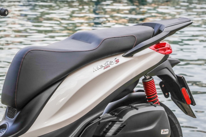 Gli interventi più evidenti riguardano la linea, con uno scudo totalmente ridisegnato e dominato dall’immancabile “cravatta” Piaggio, che ora ha una griglia tridimensionale a nido d’ape. La sagoma ricorda un po’ quella del fratello maggiore Beverly, ma con un taglio più atletico e filante. A completare il facelift ci sono cerchi di disegno inedito, una sella risagomata e un nuovo faro full LED, tecnologia utilizzata anche dalla luce di coda.