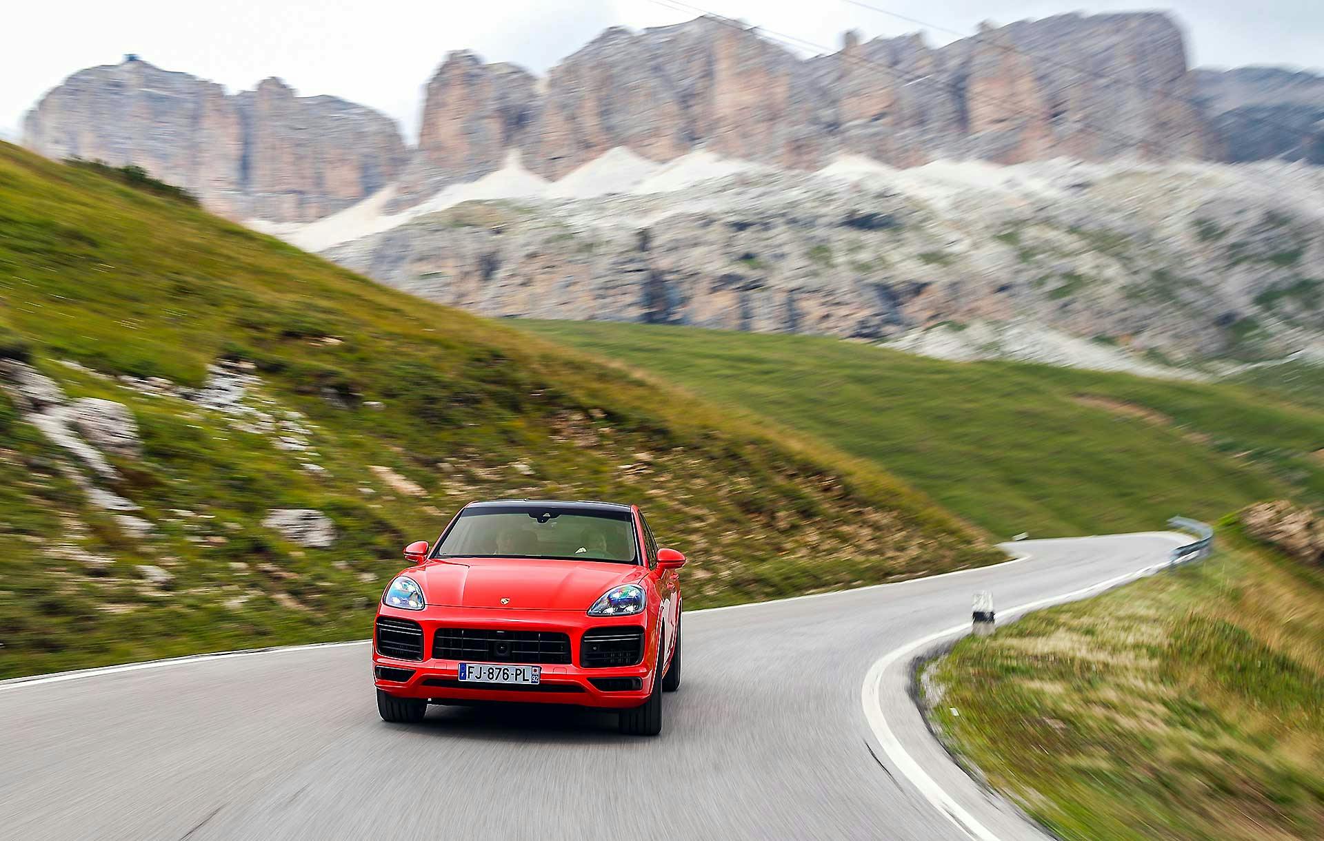 Sterzo rapidissimo, preciso come un bisturi. La guidi e davvero pare impossibile che tra curve mitiche (ma strette) come quelle dei passi dolomitici un’auto da quasi 5 metri e oltre due tonnellate possa muoversi con questa leggiadria. Eppure è così… La sensazione di controllo è incredibile, le barre antirollio attive che annullano i coricamenti laterali e ruote sterzanti compiono un piccolo miracolo. Ma questa per chi ha già avuto la fortuna di provare una Panamera o anche la Cayenne non è certo una novità… E proprio come accade con la Cayenne “normale” consentitemi di chiamarla così, anche la Coupé si fregia di sospensioni dal funzionamento semplicemente impeccabile. Sa essere sostenuta, precisa, stupendamente esente da coricamenti. Ma sa anche essere un tappeto volante, comodissimo per viaggiare e scendere dopo migliaia di chilometri freschi come non si fosse mai nemmeno partiti.