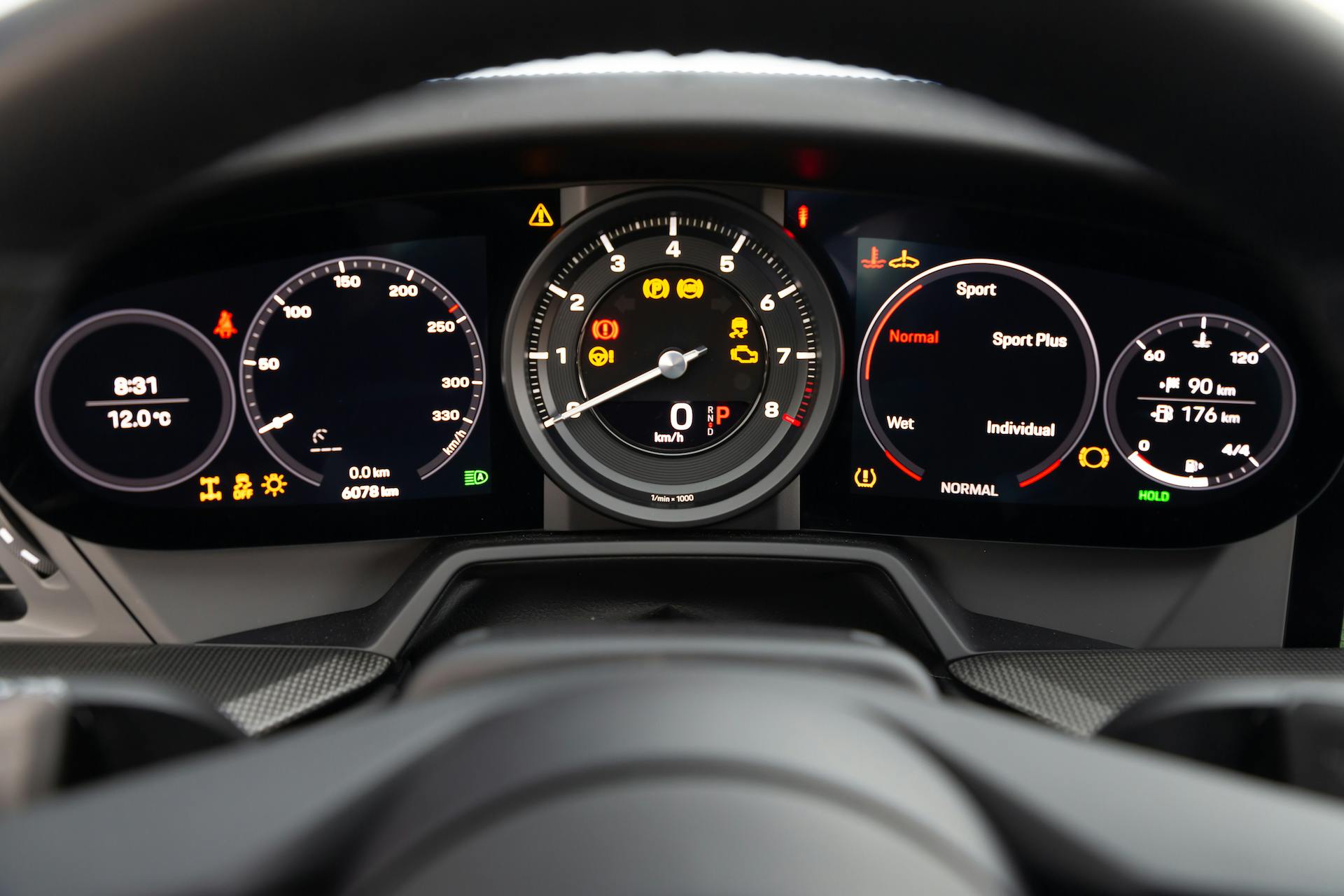 Da sempre, la 911 è famosa per offrire una risposta accurata dello sterzo e una frenata da riferimento. E indovinate un po’? Sono tutte qualità che si ritrovano, intatte, anche sulla 992. La (inevitabile e ormai quasi digerita) dipartita del servo idraulico ha portato una risposta un filo meno tattile, va bene, ma se tutti i servosterzi elettromeccanici fossero così ci farei la firma: oltre ad essere più diretto rispetto a prima – specie se scegliete le 4 ruote sterzanti, di serie solo sulla 4S – il comando della 992 ha il giusto peso e la giusta progressività. Passando ai freni, il diametro dei dischi uguale sia davanti sia dietro – 350 mm – garantisce potenza e modulabilità da riferimento, oltre ad una ineccepibile resistenza alla fatica. Sia che vi facciate bastare i dischi in ghisa di serie sia che scegliate quelli in materiale carboceramico, optional a 9.126 euro, dalla risposta ancora più pronta e corsaiola.