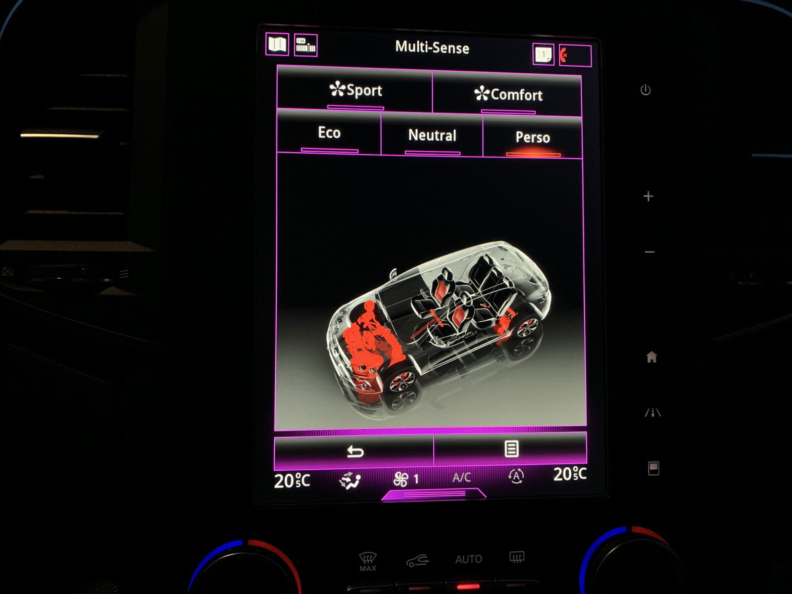La dotazione più significativa è certamente il Multi-Sense, che consente di scegliere tra cinque modalità di guida, in base alle preferenze del guidatore o alle condizioni della strada, secondo uno schema di solito riservato a vetture di segmenti superiori. Le modalità offerte sono Neutral, che si inserisce all’avvio ed è quindi da considerare standard; Eco, per ridurre i consumi fino al 12% dichiarato; Comfort, probabilmente la più equilibrata, e naturalmente Sport, che valorizza le prestazioni e l’indubbia reattività del quattro cilindri. Non manca la modalità interamente personalizzabile, che permette di combinare tutti i parametri con la massima libertà: risposta dello sterzo, mappa motore, comfort termico, sonorità del motore e illuminazione d’ambiente. Un gadget? Forse sì, ma questa peculiarità impreziosisce la Renault Mégane e fa respirare la sensazione di guidare un’auto sportiva.