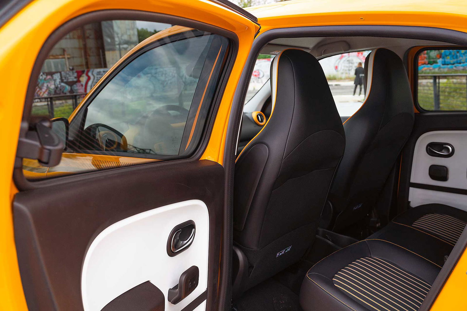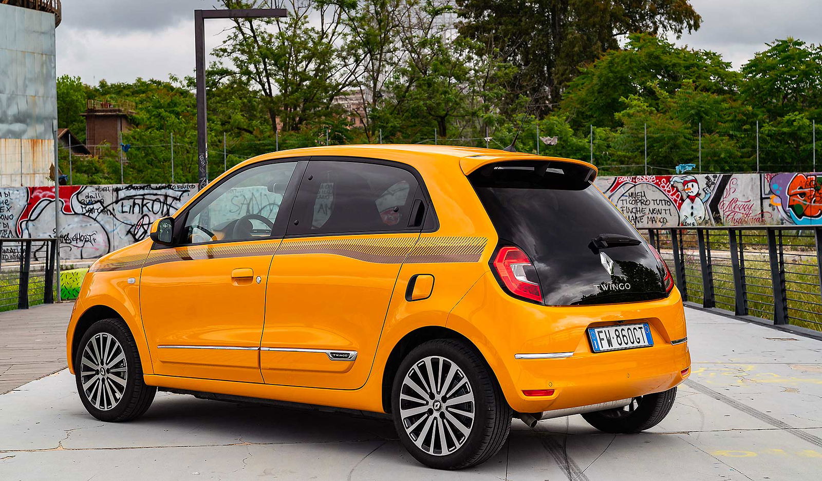 L’abitacolo, che si conferma soddisfacente per scelta dei materiali e grado di finitura, ha un look vivace e sbarazzino grazie a estesi inserti colorati, ora proposti anche nelle inedite tinte Giallo Mango e Bianco Quarzo: le medesime che vanno ad arricchire la scelta di colorazioni della carrozzeria. Non male la disponibilità di portaoggetti, fra i quali il piccolo vano davanti al cambio che offre una coppia di prese Usb. Nonostante sia lunga appena 361 cm (uno più di prima, imputabile al nuovo disegno dei paraurti), la Renault Twingo fa viaggiare comodi anche dietro: i due occupanti del divano (i posti omologati sono quattro in totale) godono di sufficiente agio per le gambe e non sfiorano il soffitto con la testa; peccato solo per i finestrini posteriori con apertura a compasso anziché di tipo discendente.