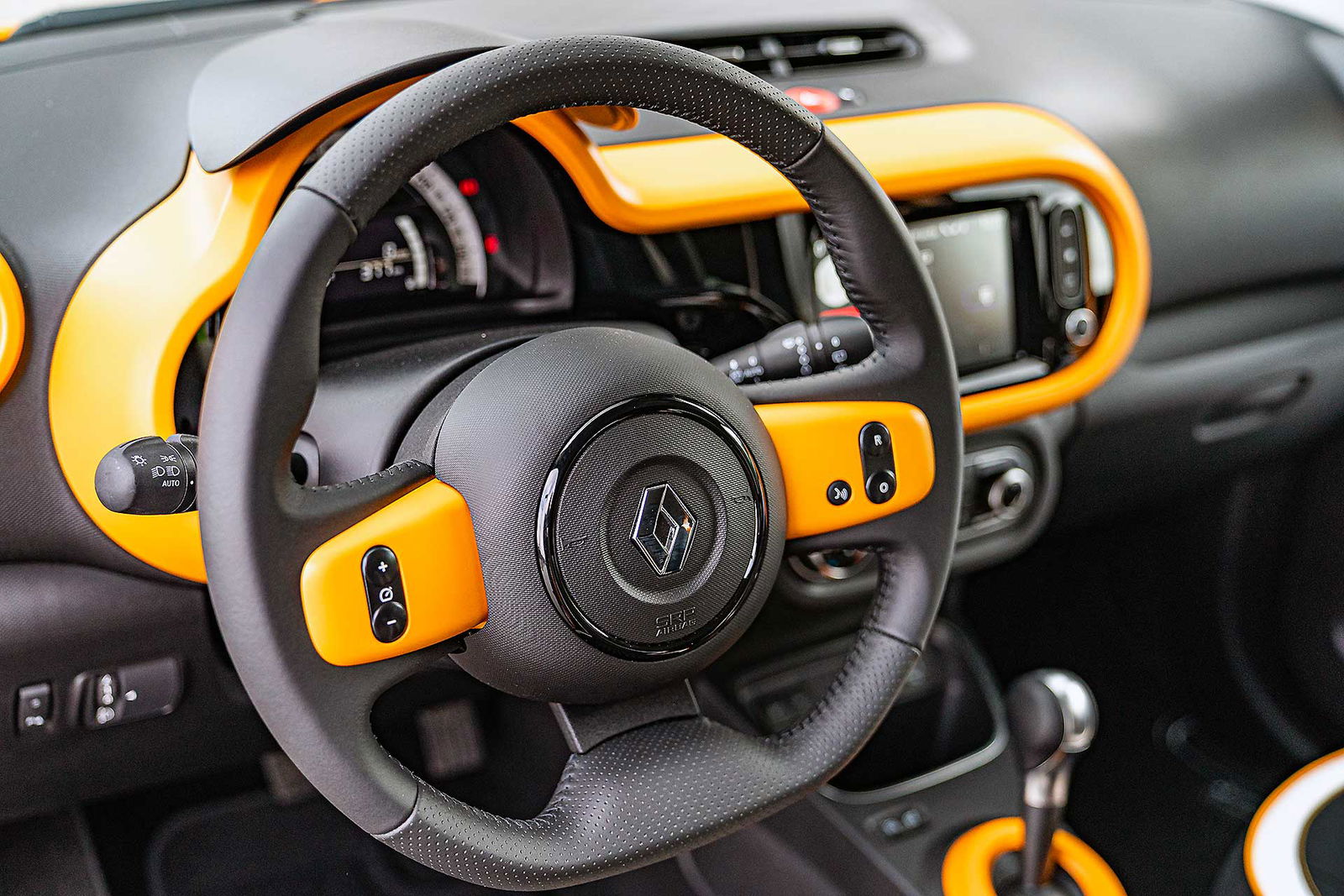 L’abitacolo, che si conferma soddisfacente per scelta dei materiali e grado di finitura, ha un look vivace e sbarazzino grazie a estesi inserti colorati, ora proposti anche nelle inedite tinte Giallo Mango e Bianco Quarzo: le medesime che vanno ad arricchire la scelta di colorazioni della carrozzeria. Non male la disponibilità di portaoggetti, fra i quali il piccolo vano davanti al cambio che offre una coppia di prese Usb. Nonostante sia lunga appena 361 cm (uno più di prima, imputabile al nuovo disegno dei paraurti), la Renault Twingo fa viaggiare comodi anche dietro: i due occupanti del divano (i posti omologati sono quattro in totale) godono di sufficiente agio per le gambe e non sfiorano il soffitto con la testa; peccato solo per i finestrini posteriori con apertura a compasso anziché di tipo discendente.