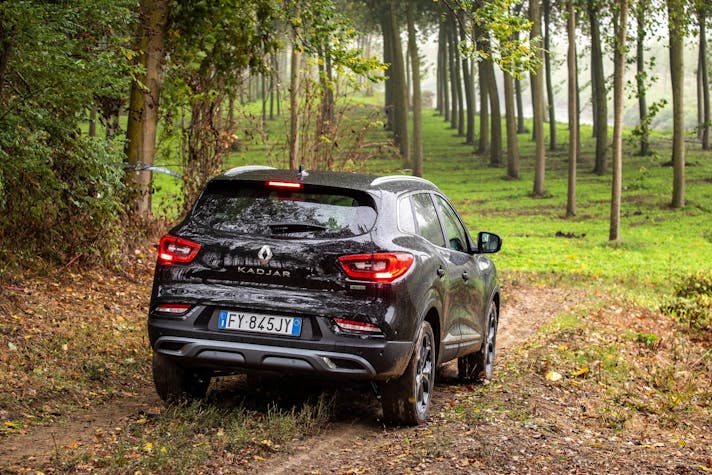 Se il divertimento ha il colore del sottobosco, è però sull’asfalto che la Kadjar vivrà il 90% delle sue giornate. Qui si comporta secondo le aspettative, ossia coccolando guidatore e passeggeri con un abitacolo confortevole e silenzioso (alcune plastiche sono però un po’ sottotono), con un equipaggiamento ricco, che comprende anche il riscaldamento e la ventilazione dei sedili anteriori. Il motore offre buone prestazioni, sia in termini di potenza sia di coppia: spinge e riprende come si vorrebbe su un’auto così, peccato non averlo provato su strade di montagna… Buono anche il comportamento del cambio, disponibile però solo in versione manuale, preciso e con la giusta rapportatura. La Kadjar tiene bene la strada: le sospensioni, un po’ secche nell’off-road, lavorano bene su asfalto, i pesi sono ben distribuiti e a beneficiarne è il bilanciamento generale. In sintesi, si comporta da buona macinatrice di chilometri, capace di mostrare anche il suo lato più brillante quando il piede si fa più pesante e meno garbato. Se a ciò aggiungiamo quanto abbiamo raccontato prima, si può chiosare constatando che ora la Kadjar è davvero completa: un SUV pronto per accompagnare anche le avventure più “sporche”.