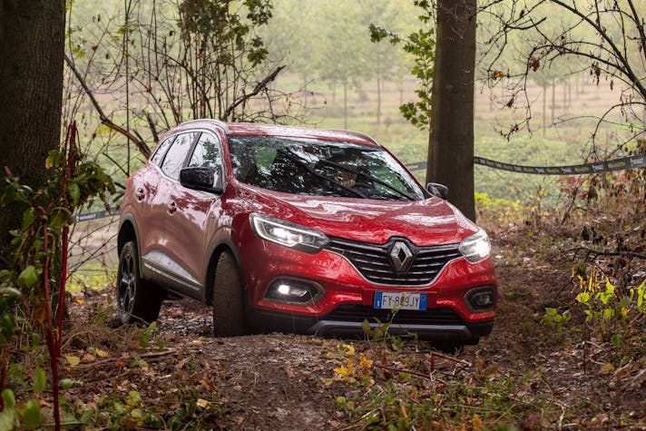 E il 4×4 della Kadjar funziona molto bene… Innanzitutto la discendenza è una garanzia: nata dell’alleanza con Mitsubishi e Nissan, non può che avere un DNA infarcito di geni carichi di nozioni sull’off-road. E poi, si tratta di una trazione integrale sviluppata per il “vero” fuoristrada, di quelle che bloccano il giunto viscoso e distribuiscono la trazione equamente fra assale anteriore e posteriore.Per farci apprezzare il lavoro svolto, gli uomini Renault ci hanno portati in un bosco sconfinato in cui era stato allestito un percorso piuttosto tecnico, reso ancora più probante dalle abbondanti piogge dei giorni precedenti, che hanno appesantito il fondo ai limiti della praticabilità.