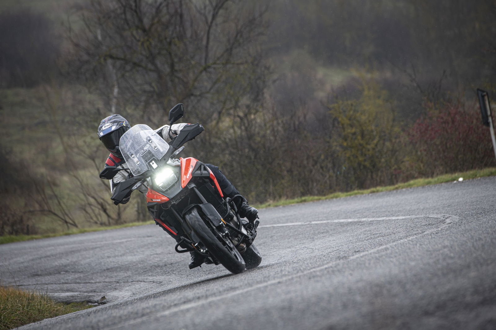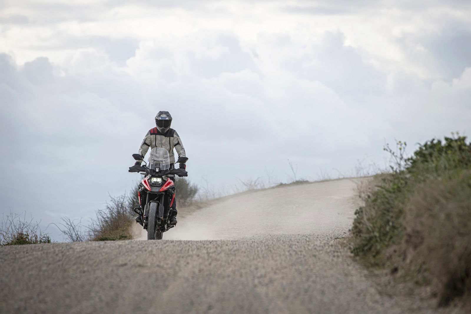 Quelli che servono, facili da impostare ed efficaci. Sono i controlli elettronici che aggiungono qualità alle prestazioni della nuova V-Strom 1050. Le tre mappe motore lavorano sulla risposta del gas, con quella intermedia eletta a scelta migliore (anche sullo sterrato) per linearità dell’erogazione, mentre la più cattiva “Full” è fin troppo brutale nella primissima parte della risposta e dunque ideale solo per pochi chilometri della nostra prova. Sull’asfalto bagnato, invece, abbiamo apprezzato la delicatezza della mappatura più soft (“Rain“, appunto…), che ha aiutato in modo impeccabile nella gestione del retrotreno. Tre livelli anche per il traction control, che può essere disinserito per fare i tamarri sullo sterrato o in uscita dai tornanti umidi. Non è invece disinseribile l’ABS cornering, ma solo regolabile su due livelli di invasività, una opzione che, guidando in off-road, è a volte gradita.A proposito di elettronica, peccato non sia previsto il quickshift nemmeno fra gli optional, accessorio che su una moto con queste caratteristiche è apprezzabile. Tutta manuale (ma immediata), invece la regolazione del plexiglas, sufficientemente ampio per togliere il grosso dell’aria da busto e casco.