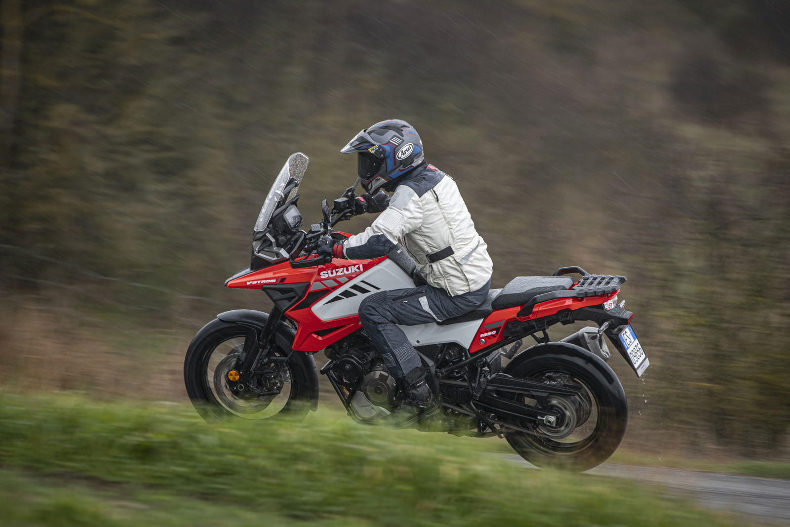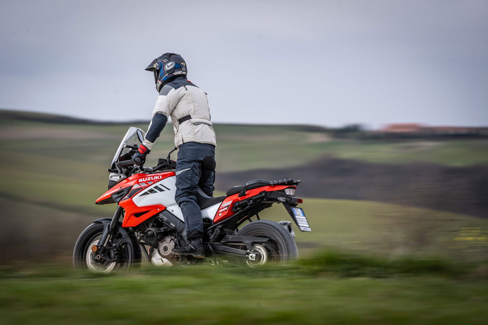 Cosa mancava alla V-Strom per competere ad armi pari con le altre protagoniste del settore? Due cose: un look più contemporaneo e un’elettronica all’altezza. Il primo, a mio gusto, è azzeccato, ma ognuno lo valuterà secondo i propri canoni estetici. Che invece sia buona anche la seconda è la strada a raccontarlo e il giudizio è oggettivo. In particolare sono stati i 120 km percorsi fra sterrato e asfalti asciutti, umidi e bagnati a raccontarci di prestazioni esuberanti ma sempre sotto controllo e di un feeling immediato.
