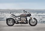 Con la presentazione, a maggio, della Rocket 3 TFC molta della suspense su come sarebbe stata la nuova Rocket 3 era svanita. Escludendo, infatti, alcune sovrastrutture e finiture da special, era evidente che motore e ciclistica sarebbero state le stesse: ecco dunque il tre cilindri longitudinale da 2.458 cc (nessun altro motore di grande serie è tanto grosso) capace di 167 cv a 6.000 giri e, soprattutto, 221 Nm di coppia a 4.000 giri. Ad abbracciarlo, un telaio in alluminio dal disegno inedito, cui si collega un monobraccio, anch’esso in lega leggera. Fra motore, telaio, cerchi, scarichi e sovrastrutture, la nuova Rocket 3 pesa ben 40 kg meno della precedente.