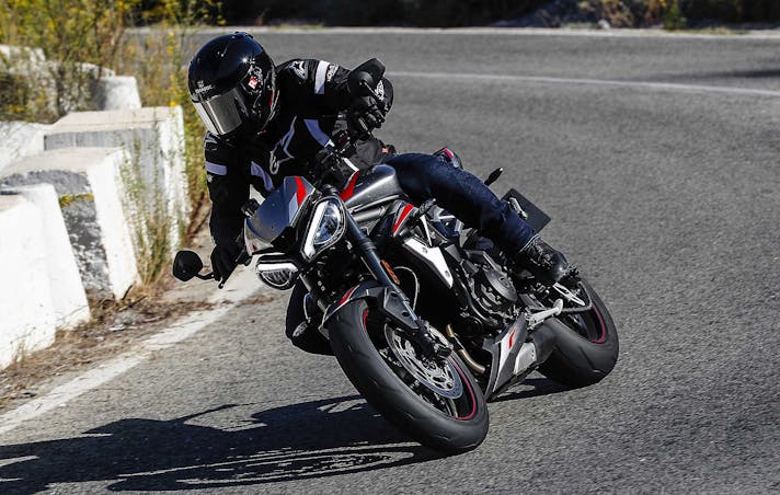 Leggerezza, precisione e prontezza nel rispondere ai comandi, capacità di “raccontare” al pilota per filo e per segno tutto quello che accade sotto gli pneumatici. Questa è in breve la Street Triple RS. Ne consegue una grande confidenza di guida, che arriva da una ciclistica molto reattiva, ma mai nervosa o ipercinetica. La Street Triple su strada resta sempre una moto rassicurante, efficace, sfuttabile. Fa quello che vuoi quando lo vuoi, grazie a un motore straordinario per carattere e qualità dell’erogazione. Ora anche migliore che in passato.