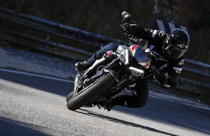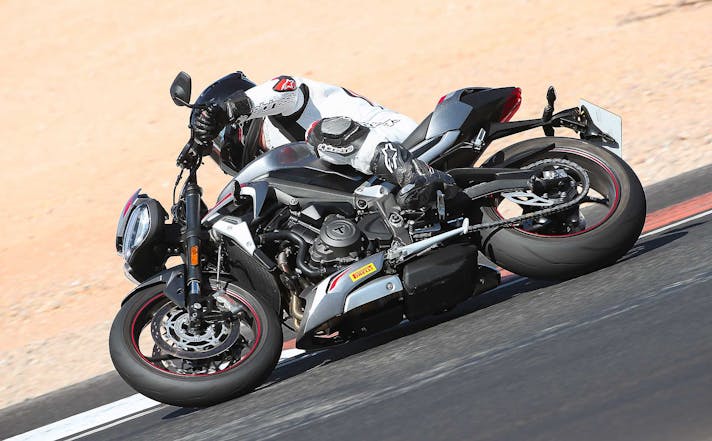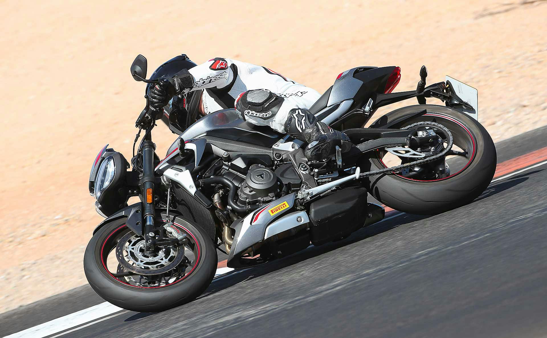 Un assetto che mostra di gradire particolarmente la pista, se è vero che con pochi click ti butti tra i cordoli con soddisfazione. La bontà ciclistica della Street Triple RS è evidente anche quando la guida si fa aggressiva. Sempre rapidissima nell’esecuzione dei comandi, sempre precisa, stabile e rassicurante con lo sterzo che non fa mai scherzi, nemmeno sul veloce. E questo, per una naked, non è scontato.