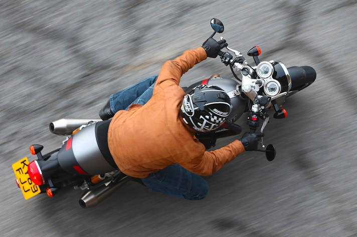 Le vibrazioni del motore si sentono sul manubrio solo quando si rilascia il gas ma non sono fastidiose; il sellino monoposto cede un po’ e a fine giornata il fondo schiena reclama una pausa più lunga di un caffè. Se da un lato giustifico la strumentazione classica in parte avrei preferito qualcosa di più moderno e meglio leggibile magari abbinando a un contagiri più grosso e arrogante a un display singolo multifunzione e infine una risposta più pronta nel primo attacco dei freni con pastiglie un po’ più aggressive ma in questo caso è solo questione di gusto personale.