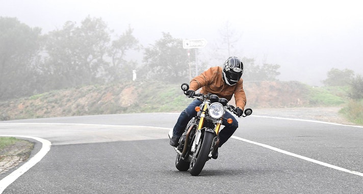 Rain, Road e Sport. Tre mappature. La prima è pensata per asfalti bagnati e la città, reagisce con leggero ritardo al comando dell’acceleratore proprio per evitare di scaricare coppia sulla gomma posteriore quando c’è poca aderenza. Vinta la soglia dei 3.000 giri si macina strada e i giri tornano a salire rapidi. Road è la risposta più equilibrata dell’elettronica che prevede poco on-off nella riapertura del gas a centro curva e potenza piena per guidare rapidi tra le curve.La mappatura Sport enfatizza lo spirito sportivo della Thruxton RS che vuole una guida fluida ma veloce tra le curve – scuola “duetempi” direbbero i puristi della guida stradale – e se la guidi così la Thruxton diventa un bel problema per le moto sportive e le naked di grossa cilindrata.