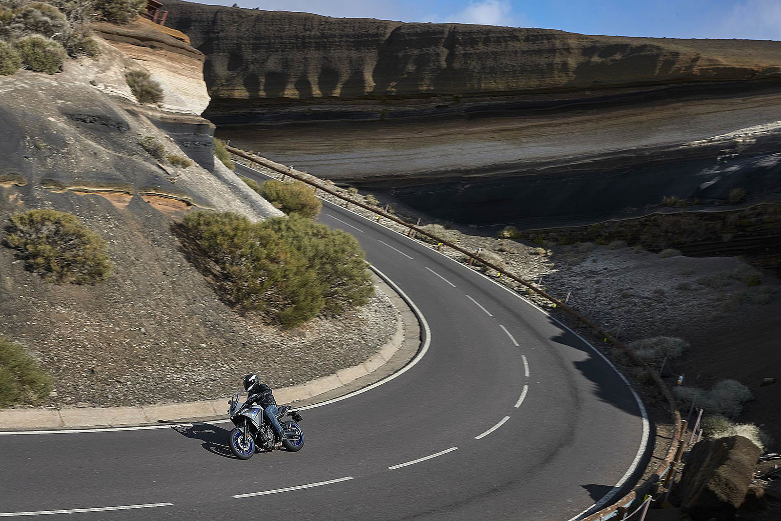 L’adozione di una corona con due denti in più ha accorciato la rapportatura finale, migliorando la prima risposta alla richiesta sul comando dell’acceleratore. La moto si è fatta più brillante. Resta il fatto che, salvo rare eccezioni, preferisco guidare la Tracer 700 con le marce lunghe, sfruttando quel “buono” che contraddistingue da sempre i motori bicilindrici. Insistere con le marce basse nella percorrenza di tornanti non giova, nemmeno cercare il picco di potenza massima ai regimi più alti. Nel caso della 700 vale la regola del bilanciamento delle forze in campo. Il motore è aiutato da una ciclistica semplice e ben bilanciata, che preferisce scorrere rotonda tra le curve, affrontandole con una frenata dolce e percorrendole con l’indicatore del contagiri puntato intorno ai 4.000 giri o poco più.