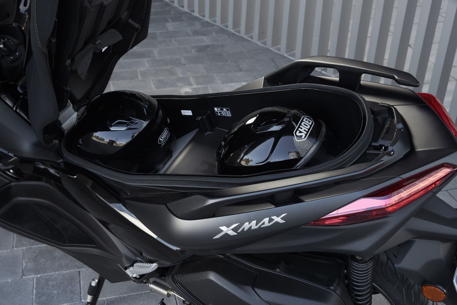 Smart Key (la chiave può restare nella tasca del giubbotto), il quadro strumenti analogico/digitale multifunzione, le luci anteriori e posteriori a LED (queste ultime fumé), la presa da 12 V. Apprezzabile il vano sottosella, con illuminazione interna a LED, capace di